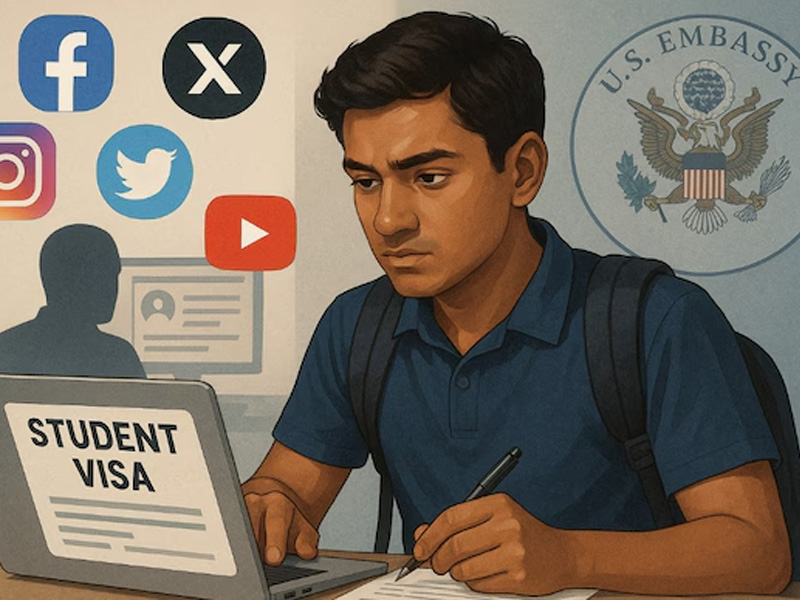 'ദേശീയ സുരക്ഷയും പൊതു സുരക്ഷയും' ഉദ്ധരിച്ച്, വിദ്യാര്ത്ഥി വിസകള്ക്കുള്ള എല്ലാ അപേക്ഷകരും അവരുടെ സോഷ്യല് മീഡിയ അക്കൗണ്ടുകള് പബ്ലിക്കാക്കണമെന്ന് യുഎസ് പറഞ്ഞു.