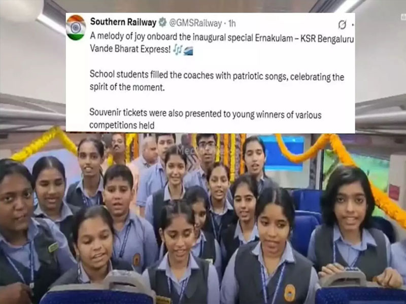 വിവാദമായതോടെ ഗണഗീതം പങ്കുവച്ച എഫ്ബി പോസ്റ്റ് ദക്ഷിണ റെയില്വേ ആദ്യം പിന്വലിച്ചെങ്കിലും പിന്നീട് രാത്രിയോടെ എക്സില് റീപോസ്റ്റ് ചെയ്യുകയായിരുന്നു. എറണാകുളം ബംഗളൂരു വന്ദേഭാരതിന്റെ ആദ്യയാത്രയിലാണ് വിദ്യാര്ഥികള് ആര്എസ്എസ് ഗണഗീതം പാടിയത്.