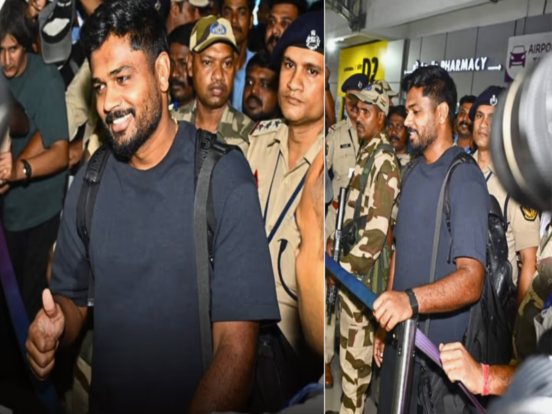 ‘ചേട്ടന് വന്നല്ലോ…’; ലോകകപ്പ് ഹീറോ സഞ്ജുവിന് തിരുവനന്തപുരത്ത് വന് സ്വീകരണം