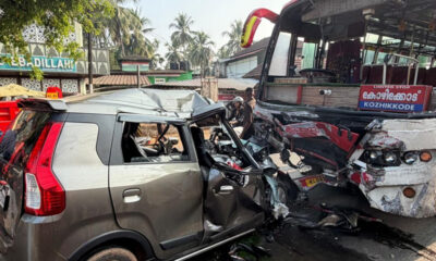 kerala2 days agoമലപ്പുറം കൊണ്ടോട്ടിയില് ബസും കാറും കൂട്ടിയിടിച്ച് അപകടം; മൂന്ന് മരണം