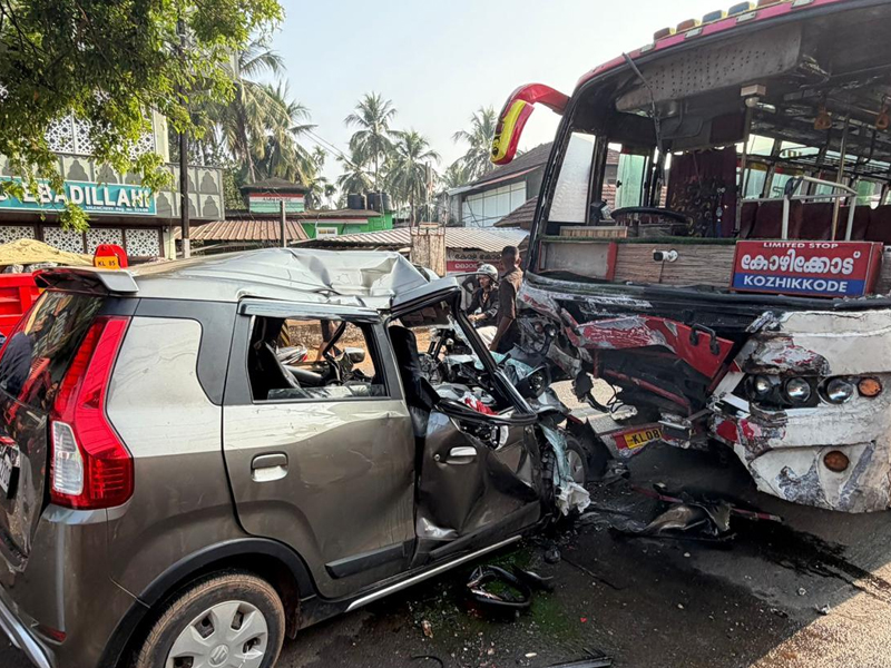 ദേശീയ പാതയിലെ മൊറയൂരില് കാറും ബസും കൂട്ടിയിടിച്ച് അപകടം, മൂന്ന് പേര് മരിച്ചു