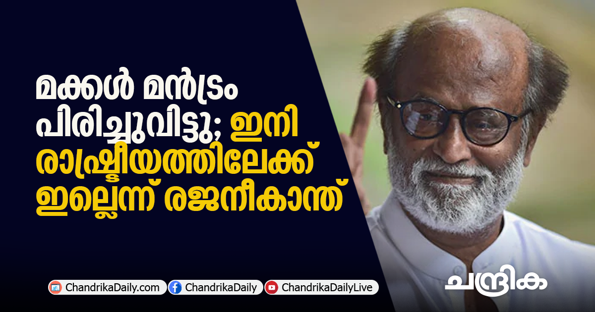ഇനി ആരാധകരുടെ കൂട്ടായ്മയായ രജനി രസികര് മന്ട്രം മാത്രമായിരിക്കും ഉണ്ടാകുക. രാഷ്ട്രീയസ്വഭാവം സംഘടന പൂര്ണമായും ഉപേക്ഷിച്ചെന്നും രജനീകാന്ത് വാര്ത്താക്കുറിപ്പില് അറിയിച്ചു