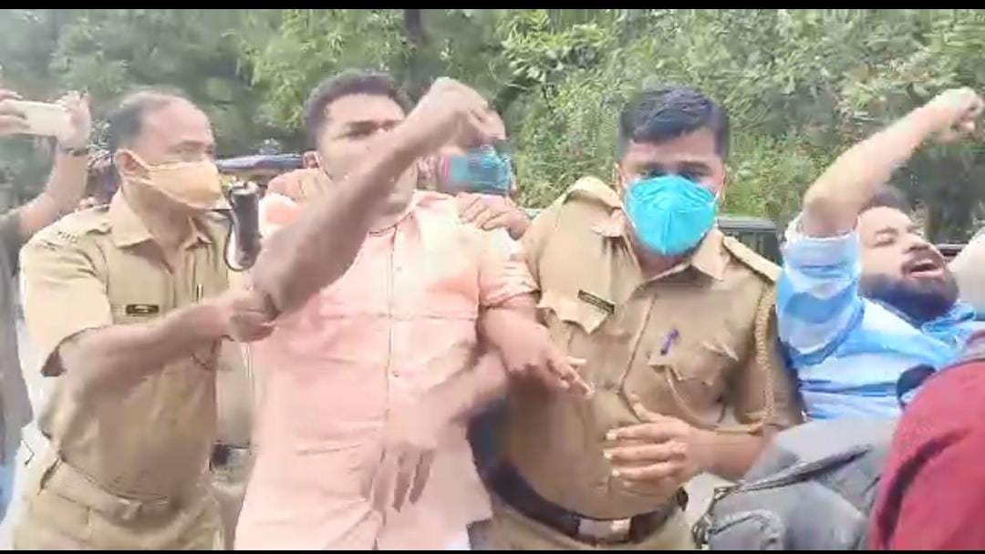 പൊലീസ് വലയം ഭേദിച്ച് നഗരസഭ കോമ്പൗണ്ടിനുള്ളിലേക്ക് കടന്ന് ഗാന്ധി പ്രതിമക്ക് മുന്നില് എം എസ് എഫ് ദേശീയ പതാക ഉയര്ത്തി