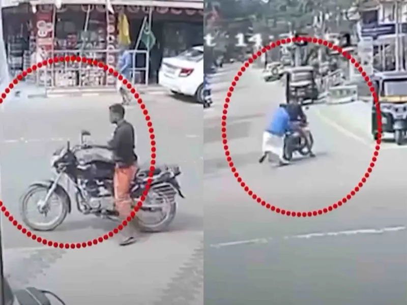 ഈ സമയം ബൈക്ക് മോഷ്ടിച്ച ആള് തന്റെ ബൈക്കുമായി മുന്നിലൂടെ പോകുന്നത് കണ്ടു. രാധാകൃഷ്ണന് ഒന്നും നോക്കിയില്ല, പിന്നാലെ ഓടി ബൈക്ക് പിടിച്ചു നിര്ത്തി നാട്ടുകാരെ വിളിച്ചു കൂട്ടി. ശേഷം പൊലീസ് വിളിച്ചുവരുത്തി മോഷണം നടത്തിയ മുട്ടികുളങ്ങര ആലിന്ചോട് സ്വദേശി രാജേന്ദ്രനെ അറസ്റ്റ് ചെയ്യിപ്പിക്കുകയും ചെയ്തു. സംഭവത്തിന്റെ ദൃശ്യങ്ങള് സിസിടിവിയില് പതിയുകയും ചെയ്തു.
