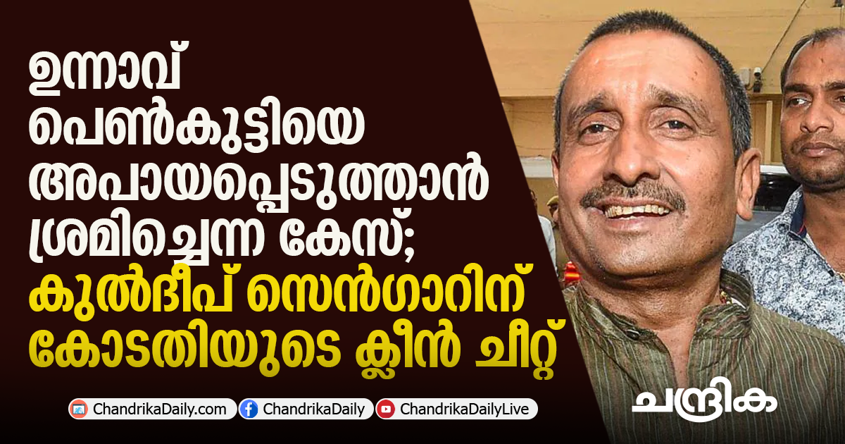 ഉന്നാവ് പെണ്കുട്ടിയെ അപായപ്പെടുത്താന് ശ്രമിച്ചെന്ന കേസ്; കുല്ദീപ് സെന്ഗാറിന് കോടതിയുടെ ക്ലീന് ചീറ്റ്