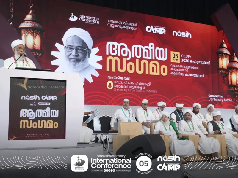 ശരിഅത്തിന് വിരുദ്ധമായ ആത്മിയത ഇസ്ലാമിലില്ലെന്നിരിക്കെ, ഉലമാക്കള് കാണിച്ചുതന്ന പരിശുദ്ധമായ തസവുഫിന്റെ വഴിയില് നിന്ന് വ്യതിചലിച്ച് സ്വയം പ്രഖ്യാപിത ശൈഖുമാരായി ചമയുന്നവര് സമുദായത്തെ വഴിതെറ്റിക്കുകയുമാണ്. ആത്മിയതയുടെ പേരില് ശരിഅത്തിനെ അവഗണിക്കുന്നതും ഫിഖ്ഹി നിയമങ്ങളെ നിസാരപ്പെടുത്തുന്നതുമായ ഇത്തരം വികല ചിന്താഗതികളെയും കേന്ദ്രങ്ങളെയും വിശ്വാസികള് തിരിച്ചറിയണമെന്നും അഹ്ലുസുന്നയുടെ ശുദ്ധമായ ആത്മീയ പാതയില് അടിയുറച്ചു നില്ക്കണമെന്നും നൂറാം വാര്ഷിക സമ്മേളനത്തിലെ ആത്മീയ സംഗമത്തില്ത്തില് ആവശ്യപ്പെട്ടു.