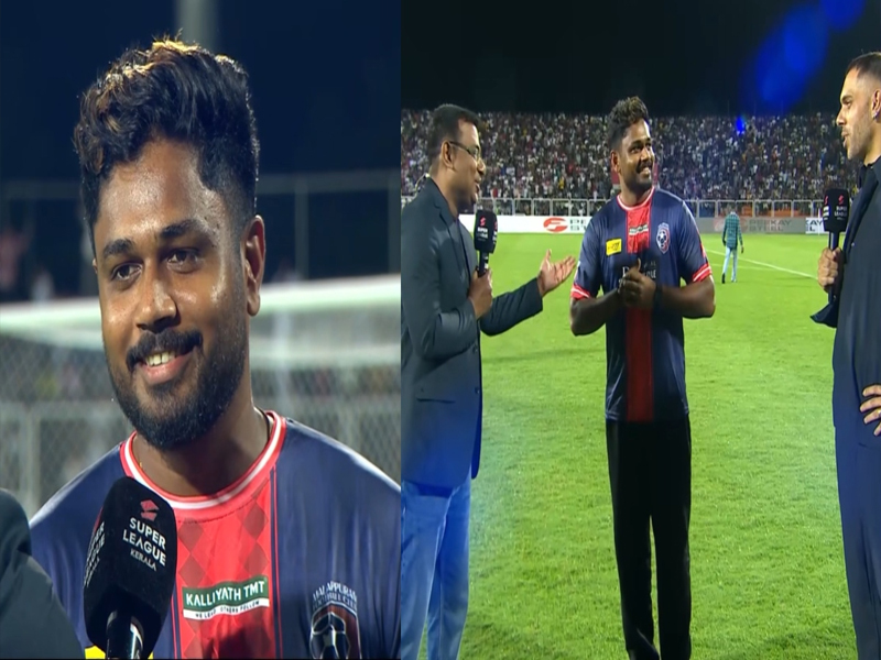 ഇപ്പോള് സൂപ്പര് ലീഗ് കേരളയില് മലപ്പുറം എഫ്സിയുടെ ടീമില് സഞ്ജുവിന്റെ ഇടപെടലും പ്രതികരണവും വീണ്ടും ശ്രദ്ധേയമായി. മഞ്ചേരി പയ്യനാട് സ്റ്റേഡിയത്തില് മലപ്പുറം എഫ്സിയും തൃശൂര് മാജിക് എഫ്സിയും തമ്മിലുള്ള മത്സരത്തില് സഞ്ജുവിന്റെ വാക്കുകള് അവതാരകര് വീണ്ടും ചര്ച്ചയാക്കി.