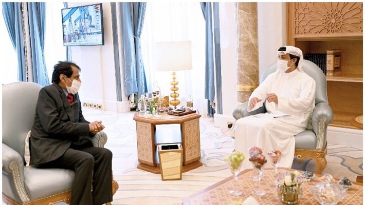 ജി 20 ഉച്ചകോടിയിലെ ഇന്ത്യന് പ്രധാനമന്ത്രിയുടെ ഔദ്യോഗിക പ്രതിനിധി സുരേഷ് പ്രഭാകര് പ്രഭുവിനെ യുഎഇ ഉപപ്രധാനമന്ത്രിയും രാഷ്ട്രപതി കാര്യമന്ത്രിയുമായ ശൈഖ് മന്സൂര് ബിന് സായിദ് അല് നഹ്യാന് സ്വീകരിച്ചു