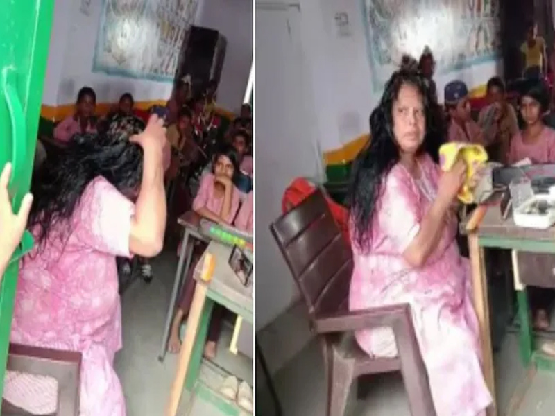 ഉത്തര്പ്രദേശിലെ ബുലന്ദ്ഷഹര് ജില്ലയിലെ ഒരു സര്ക്കാര് സ്കൂള് അധ്യാപിക ക്ലാസ് മുറിയില് പാട്ട് വെച്ച് മുടിയില് എണ്ണ തേക്കുന്ന വീഡിയോ വൈറലായതിനെ തുടര്ന്ന് അധ്യാപികയെ സസ്പെന്ഡ് ചെയ്തു.